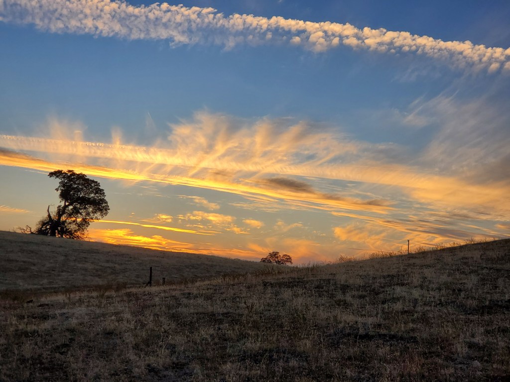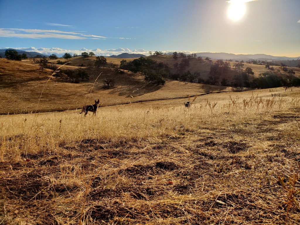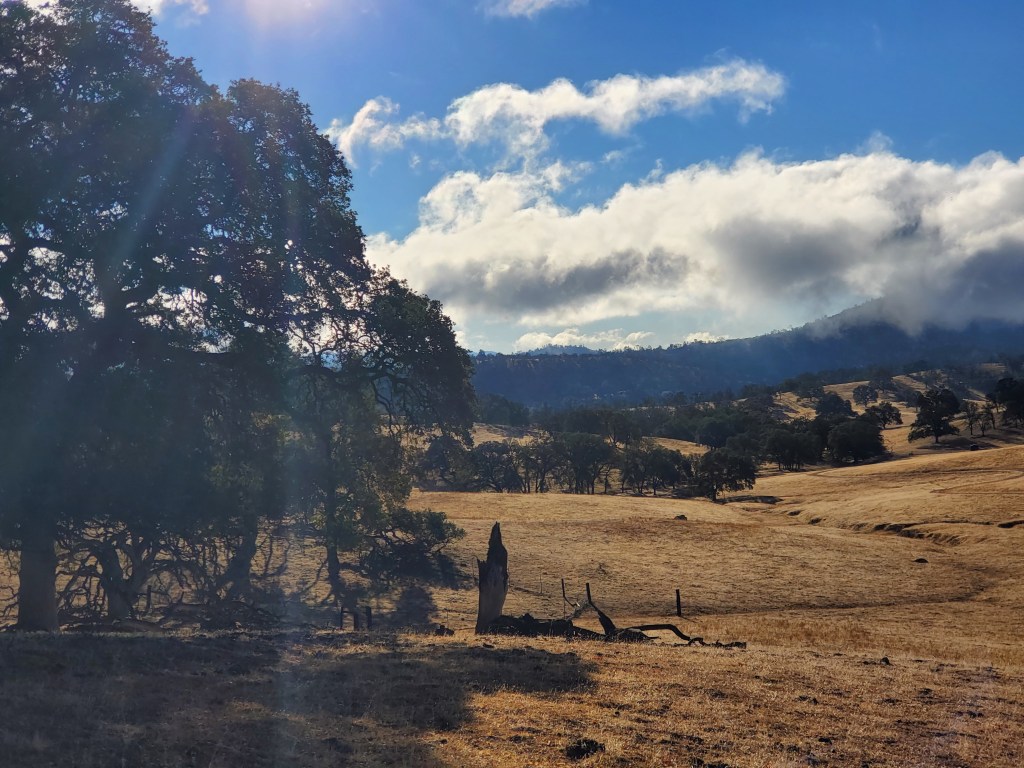 While out checking the oaks and maintaining their planted areas, I was quickly caught up in a storm. The wind was ferocious, bending the oak marking flags to almost 90 degrees. Fortunately, I was in my final section, which happened to be nearest the house. The rain started to pour. While I had a jacket on, I was wearing shorts (I know. I’m crazy). The wind whipped at my exposed legs, and then it started to pour. I typically traverse the ranch on foot to limit soil impacts from the quad or truck. I finished with the oak I was working on and bolted up the hill, through the gate, around to the front of the house, sloshing in mud (I had my muck boots on), mud splattering across my legs. Finally, I got to the front door – a soaked, muddy mess. Although I was almost denied entry to the house by my family, it was ok. I love this life.