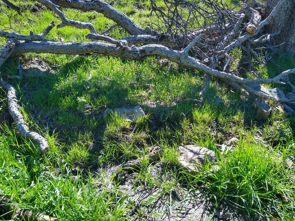 The humidity is so low so often that the moisture gets sucked out of the troughs, the soil and the plants. I have not seen anything like this in years. The hill spring (photo above), where I planted one of the big leaf maples, is already drying up. This spring typically stays green through the summer and dries in the fall. I knew it would be a dry year, so I prioritized planting within the moist soil of the spring and also in the green portions of the arroyo. I am not sure that will be enough help. The soil is clay in both those locations and requires the spring moisture to absorb into the hardened soil for it to benefit the plants. Otherwise, it is just a location with deep fissures with limited moisture retention. I am watering the arroyo twice a week now and am concerned that the water simply “falling through the cracks” with limited absorption into the hard soil. I am still monitoring this site to make a final assessment of benefit or not.