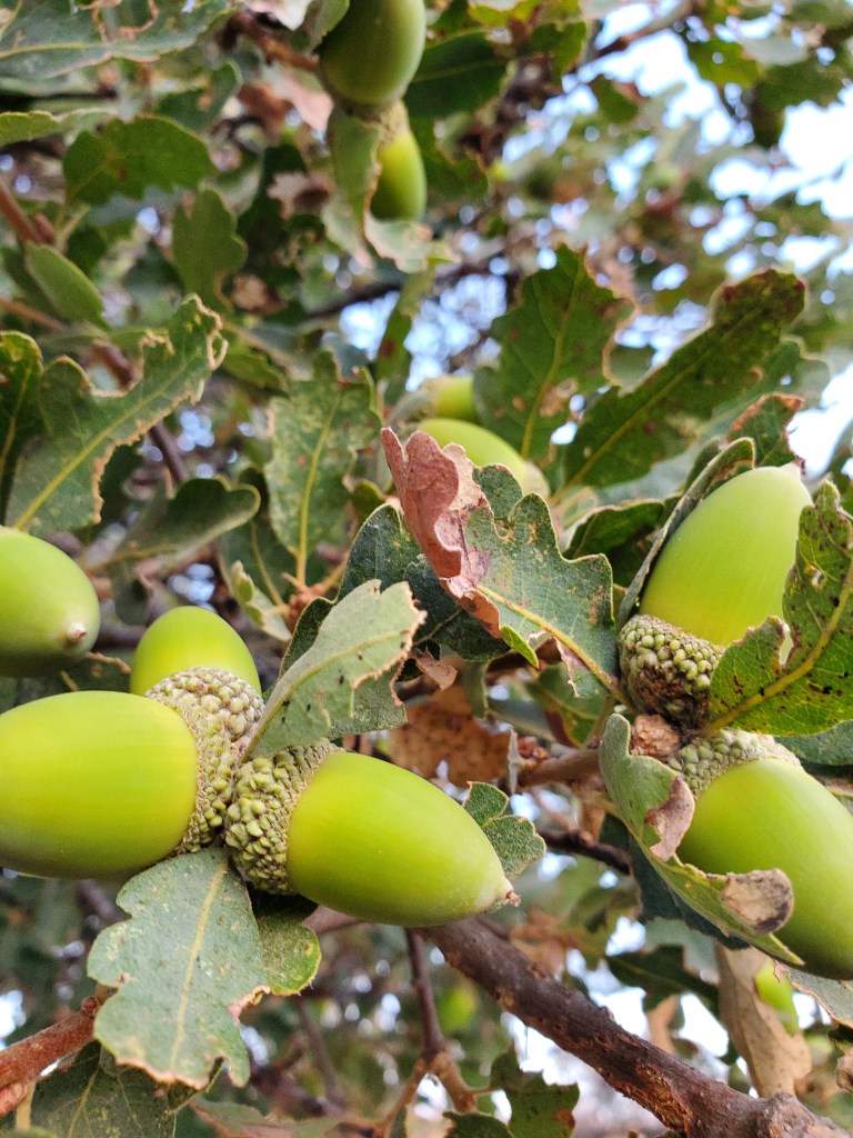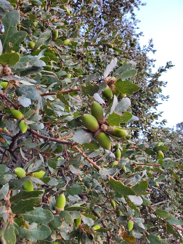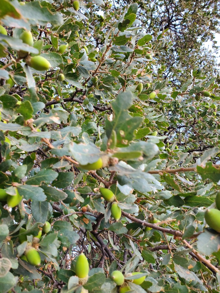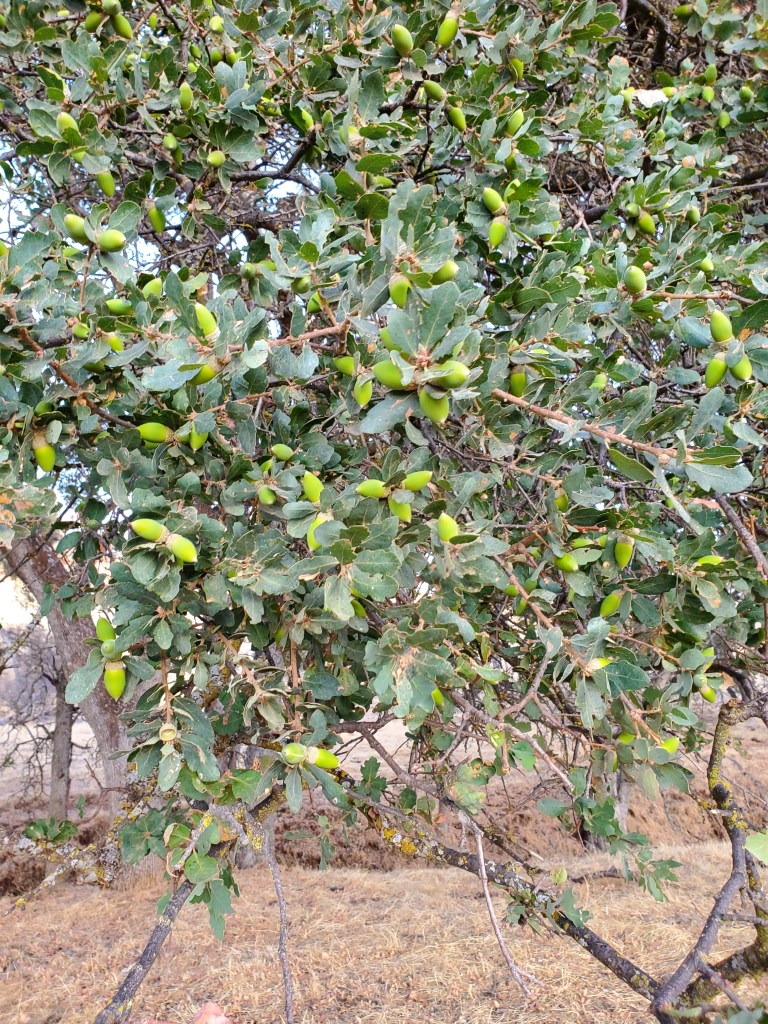 While I did not have time to gather acorn for flour making, I did have a chance to gather about 200 for planting across the ranch. I harvested from the grand old oak near the house and the smaller oaks in the Spring Creek riparian area. I am planning to do a combination of seedlings (16), and the rest will be plantings of acorn. I do not want a repeat of last year when the grasshoppers ate all my back-breaking work.
