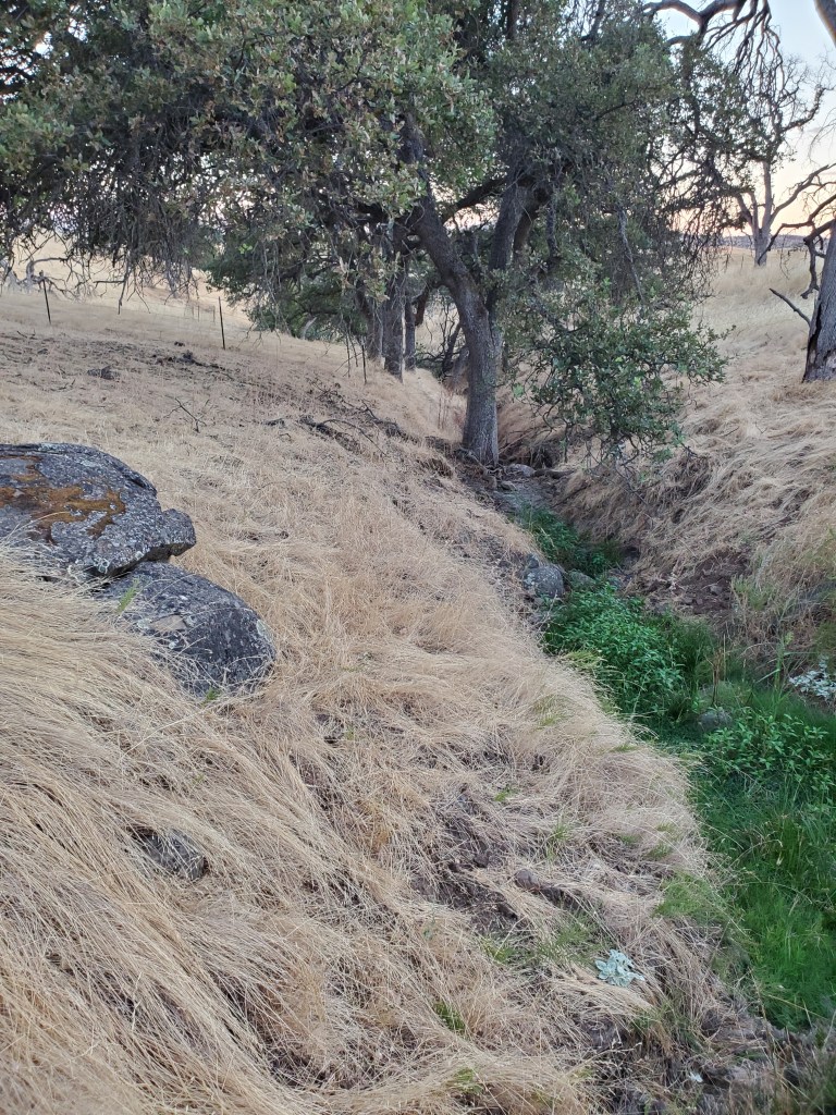 Since early 2024, I’ve had a 40lb bag of narrowleaf milkweed seeds. My intent was to plant them all last winter. I was was able to get about 1/3rd into the ground, but I ran out of time. With the rains taking a break in late December 2024, I made plans to seed the riparian exclosure areas. It had been some time since I was in the mid-section of the ranch. It was a joy to be out there on the creek. Over two days, rake in hand, I was able to plant the entire stretch of Spring Creek, even beyond the exclosure, and the entire stretch of Odom Creek inside the exclosure. Fun, but I now have a stiff neck!