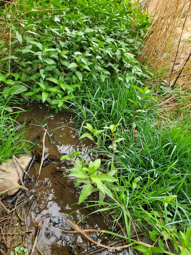 I changed the type of planting sites to, hopefully, give the seeds different opportunities to establish. The existing milkweed on Odom Creek I have found just off the main area of the water flow, but in the creek bed. I have also seen the showy milkweed I planted thrive up higher on the creek bank. With this observational experience, I chose a variety of locations up and down the stream, closer and further away from the water, uphill and downhill, in disturbed areas and in areas with existing grass growth, next to rocks, away from rocks, in sandy soil, in clay and in loam. I hope something will establish!