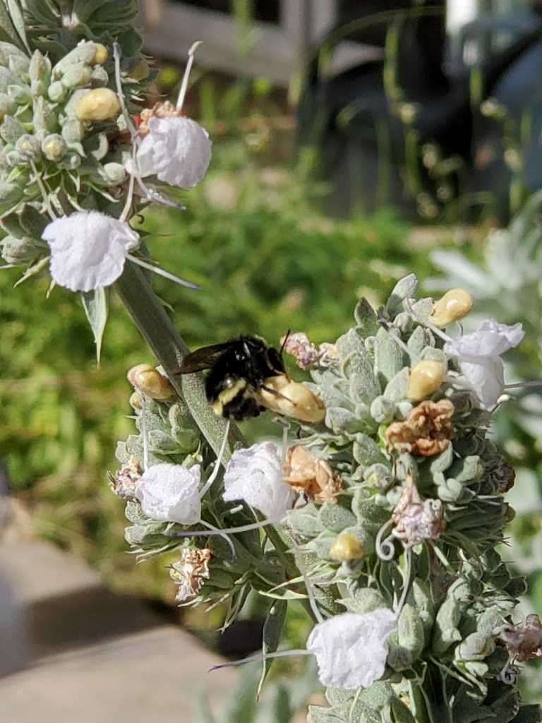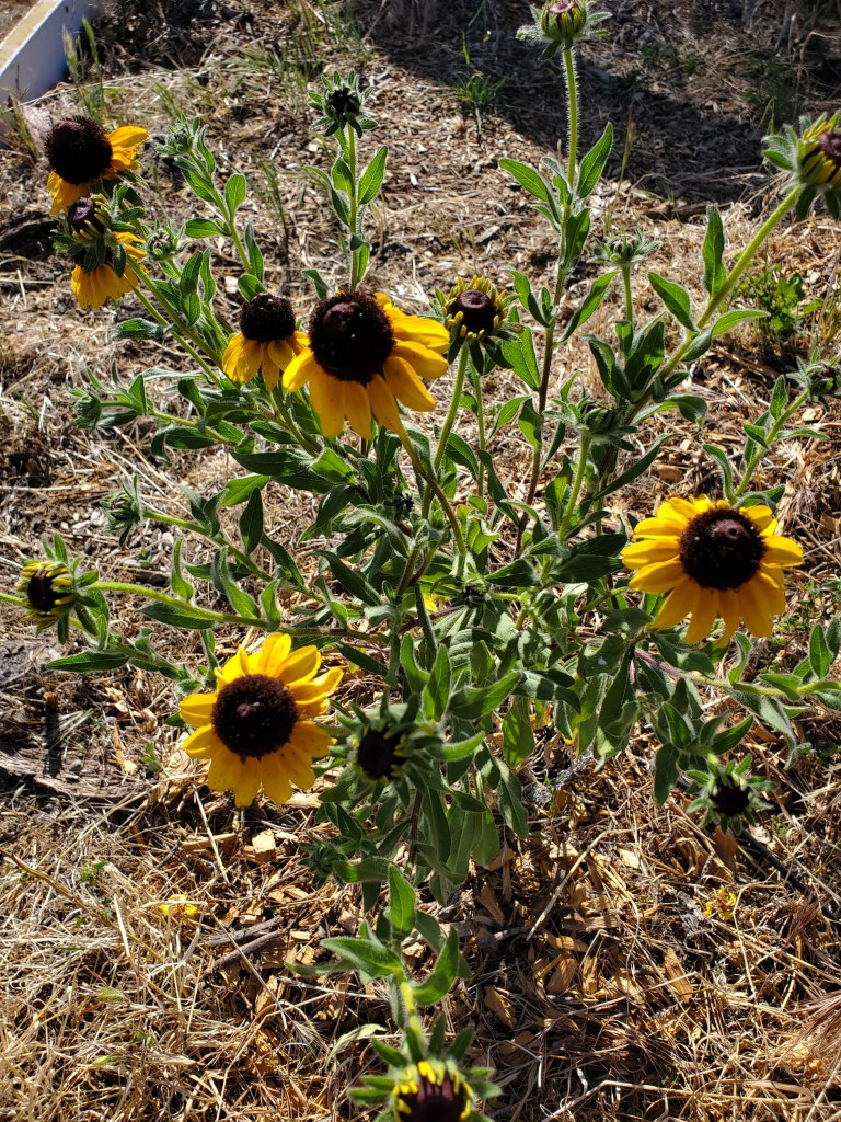 Blooming on July 13 when I began this post and mostly still blooming now are pacific asters, datura, sunflowers, matilla poppy, California poppy, narrowleaf milkweed, California fuchsia rabbit brush, black-eyed susan, marigold, sulfur buckeye, and worm wood. There were a couple small blooms on the white sage, basil and other garden items.