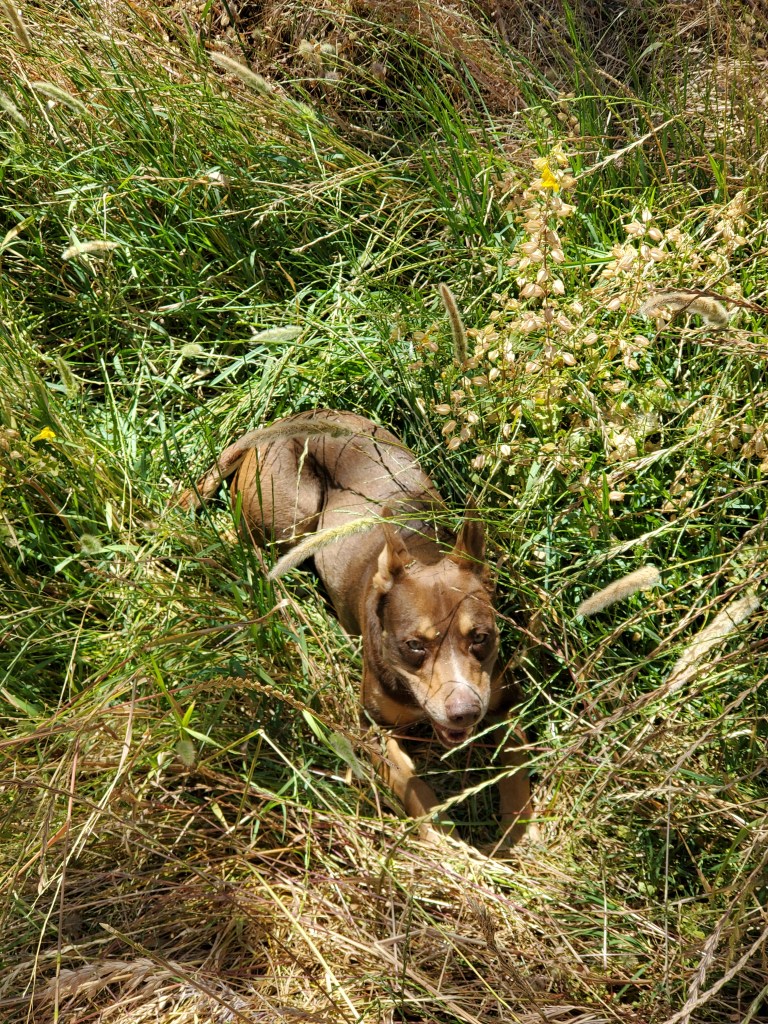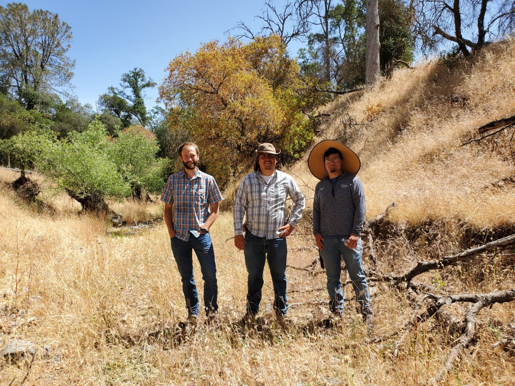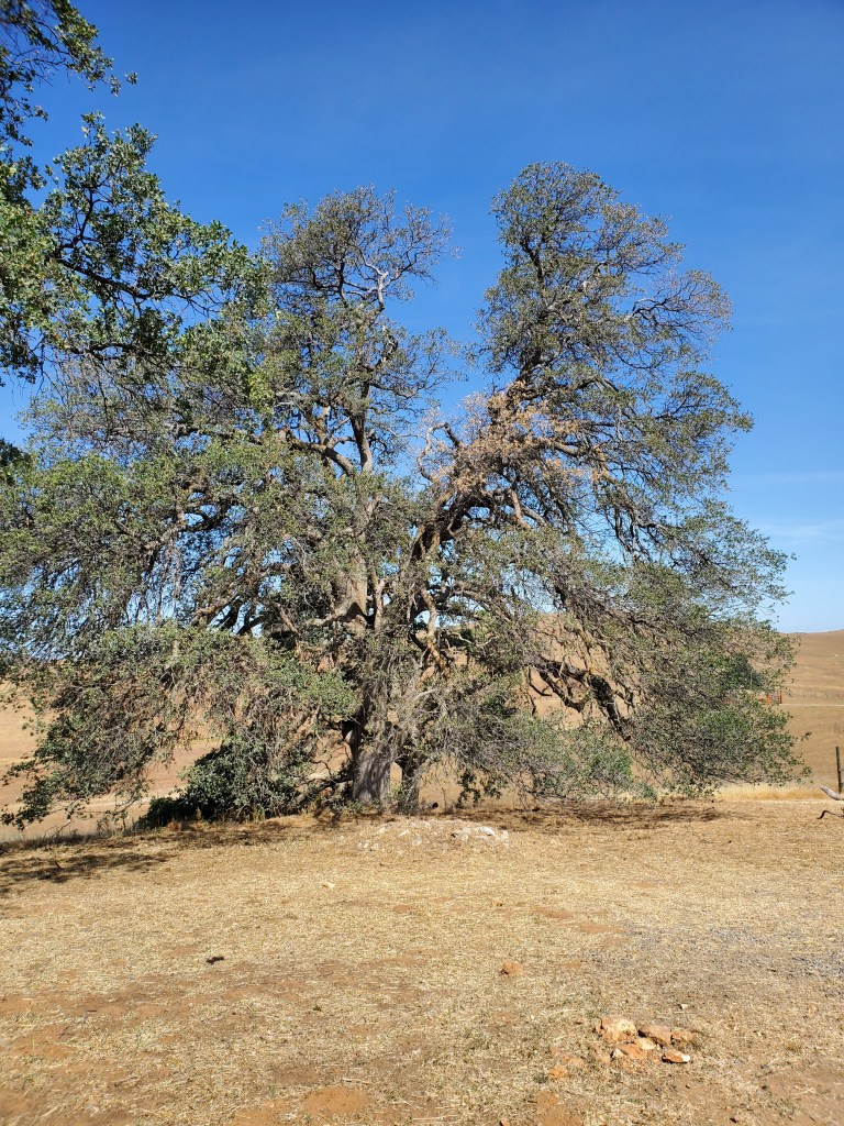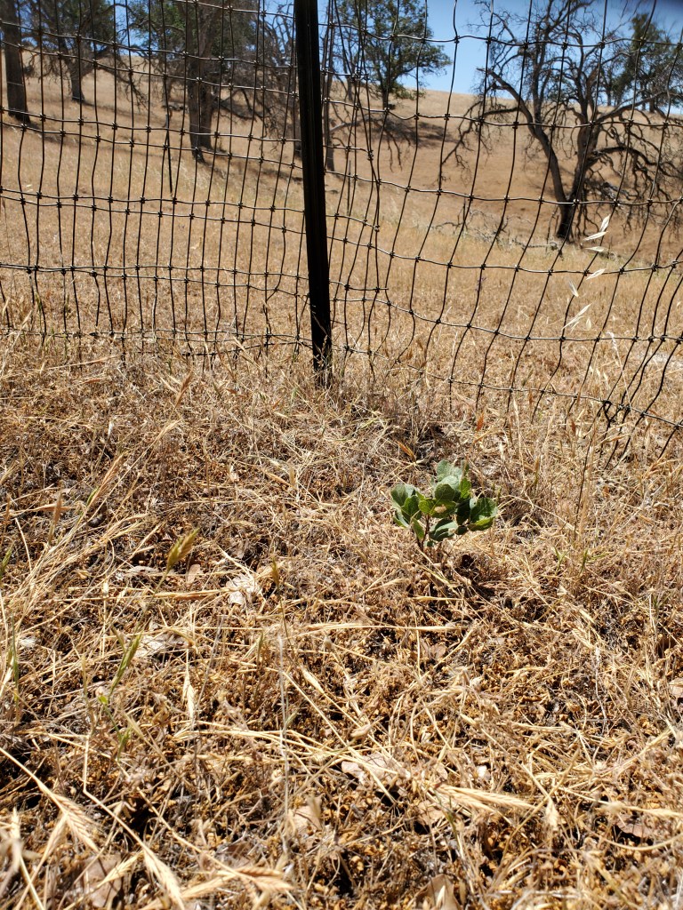 We have gotten lucky. The grasshoppers have not stripped everything. Their population exploded, especially near the riparian areas, then, all of the sudden, they abated. The hoppers had started eating their way up the hill. They hit some of my outlying plots hard, but then stayed away from the habitat closer to the hilltop. The oaks planted on the lower Spring Creek area and those down hill from the hilltop were not so fortunate. They were eaten, but quick action with screen boxes saved some. Several have come back and are leafing out again. I gave out a loud yip when I saw that. I had felt so dejected. I still lament the loss of the other trees. It is difficult to get a blue oak to grow under my specific conditions – heat, grasshoppers, gophers. Every year lost is one year less with young trees. I have to do better.