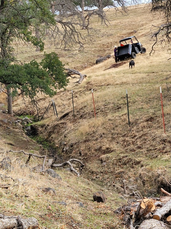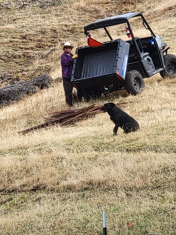After a year and a half of trying various barriers, we finally got a temporary fence up around Site 8. I had planned to install a 4-strand wildlife friendly fence, but I ran out of time. The 4-strand requires me to have help, which is not always available. The planting had gotten done, and the plants needed to be protected from the cattle. I made a pivot back to installing no-climb fencing. I just need help with the huge roll, but can generally stretch and clip the fencing to the posts myself. After the Pollinator Team minus me left, David and I went back out to Site 8 and finished the fencing. It isn’t pretty, but the plants are safe from hungry cattle. In January, I will be getting a professional fence installed that will fence off the spring all the way down to the bottom of Site 8. It will be such a welcome piece of infrastructure, which will allow me to plant as much as I want without fear of cattle intrusion. Thanks to David, once again, for coming to the rescue helping me work with a 300lb roll of no-climb fencing!
