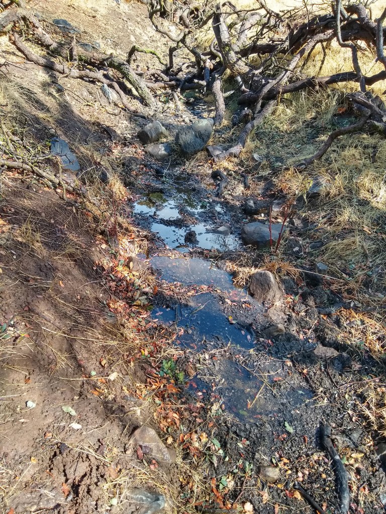 If you don’t have to drive in it, fog is a really beautiful weather event. Not only does it lend mystery to the landscape, but it has been critical to ensuring the soil and plants stay moist – especially given the soaring heat during the afternoons. It is way too hot for November. Flowers are still blooming; grass is growing. Ants and flies emerged. Honey bees are still buzzing around but look really tired. I even saw a bumble bee the other day. All of this is not good. The cold is supposed to be a time of rest for many insects and plants. Like humans, they need their rest to be healthy and thrive in the Spring. Although we are still getting dew in the morning, and we had the first hard freeze on Thanksgiving Day, we have not had any rain since early November. The hillsides are browning up. We need water.