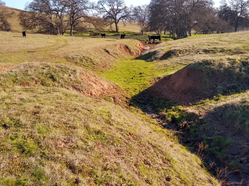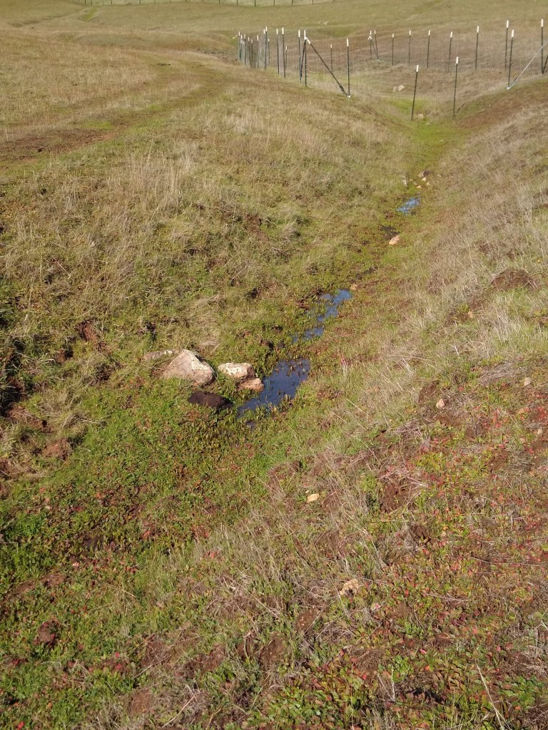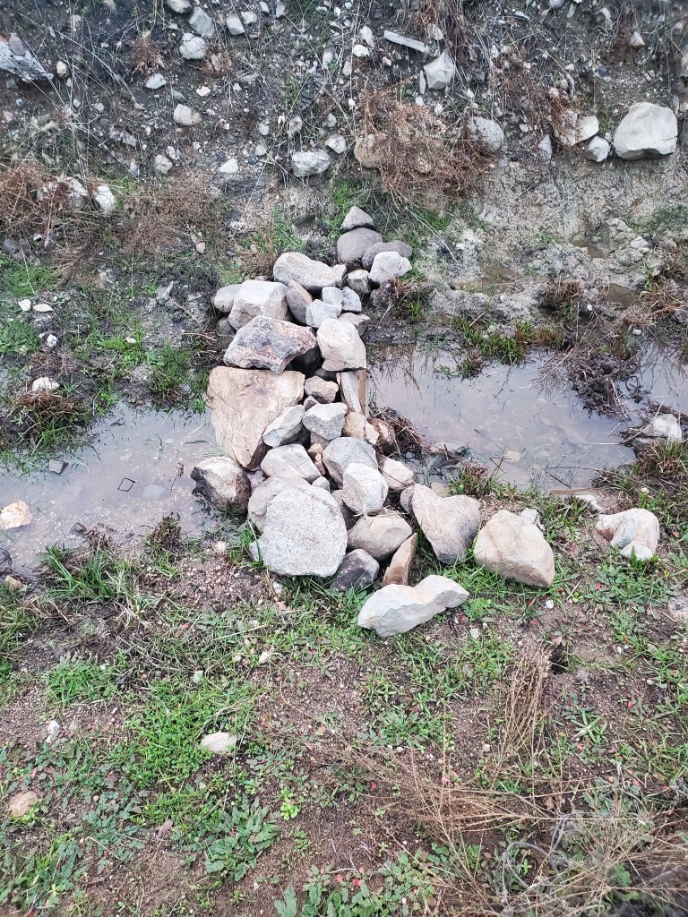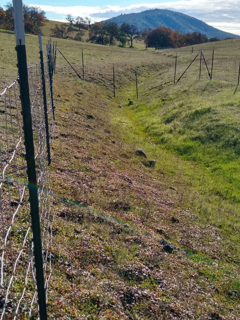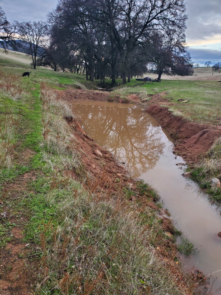 It was a joy to have cold weather and storms, with the most recent one being very large. Water is life, and life is omnipresent and happy when water is around. After the storms, I check my dams to see how they are doing. Everything is holding in place, even my little rock check dam. You see the water, when the creek is running slowly, backing up as intended. I will be placing another dam below that one to slow more water and hopefully spread it out a little to soak the ground and make it more hospitable for oaks.