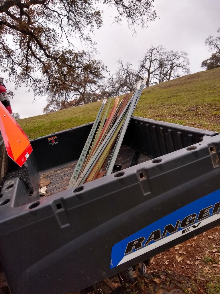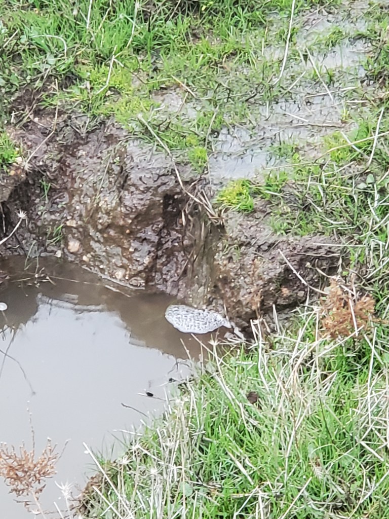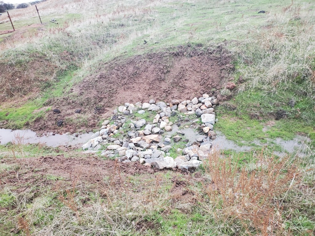 We did have a good storm the third week of February. It rained 2.25″ in a few hours. This was enough to over run roads, creek banks and surge in a destructive way. Some of the tin panels I use along the fence line to block the openings across the creeks from cattle got disconnected and moved downstream. The force of the water surge on Odom Creek actually tore the bottom wire apart, snipped it right in half, tearing the tin off and floating it downstream. Fortunately, I found all the panels that were torn off. David and I will reattach them. They need to be in place to prevent the cows from accessing my oak seedlings and other plantings.