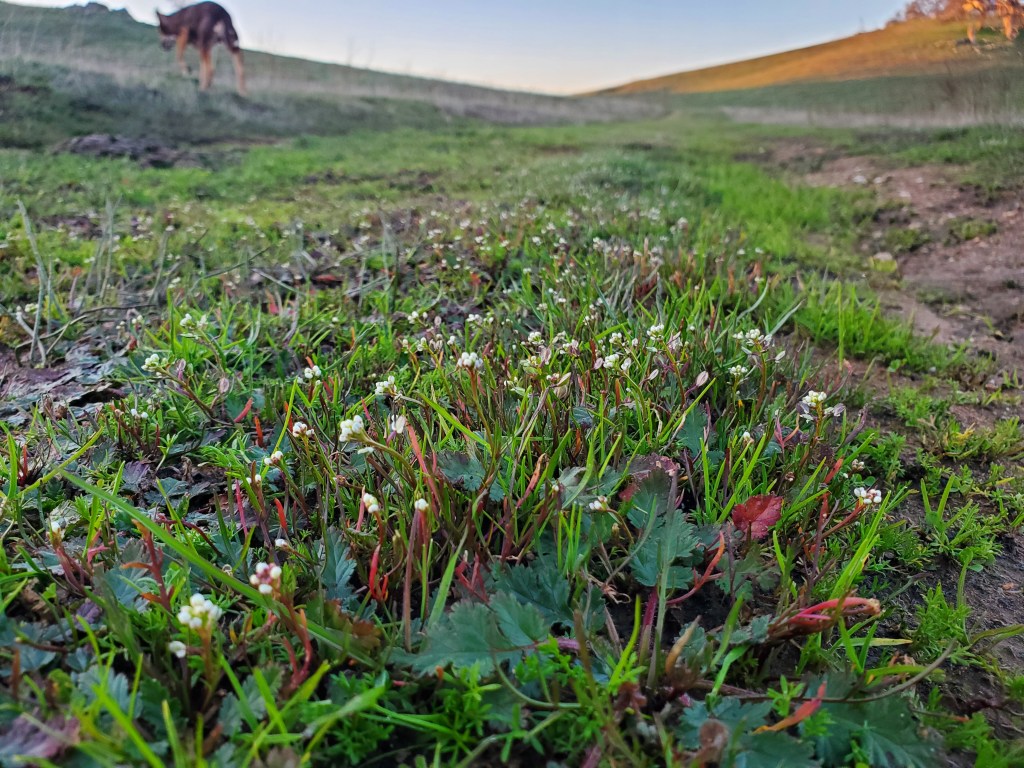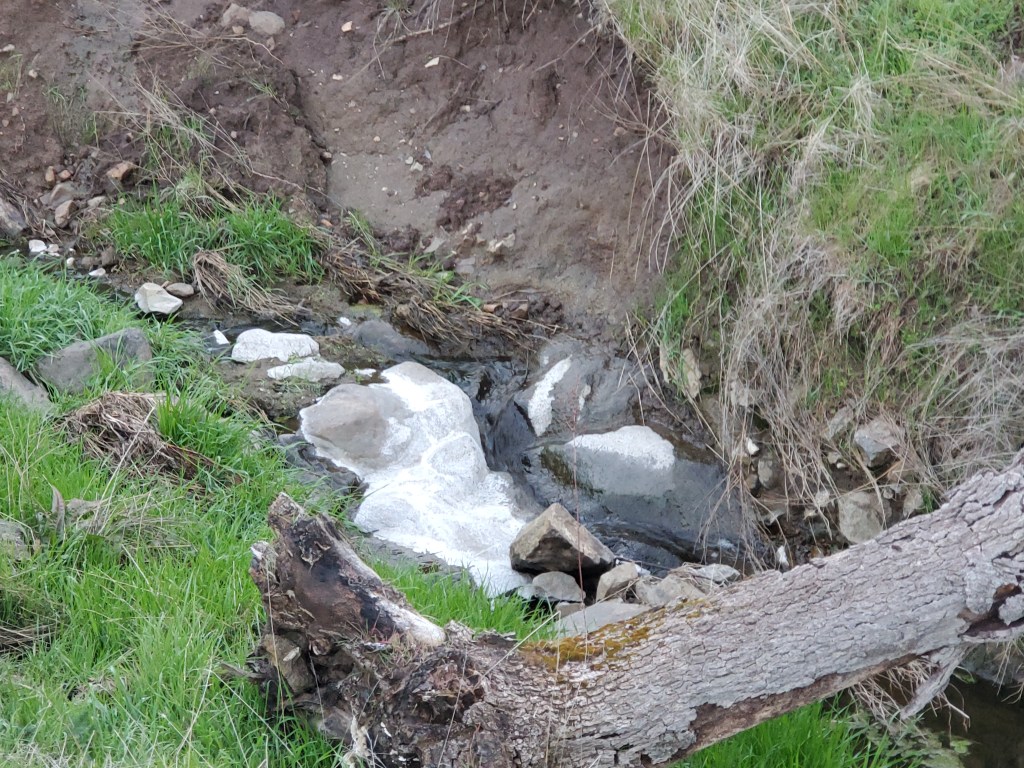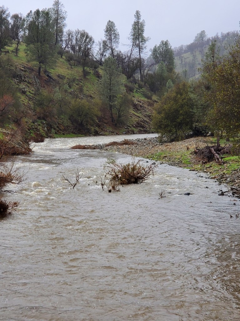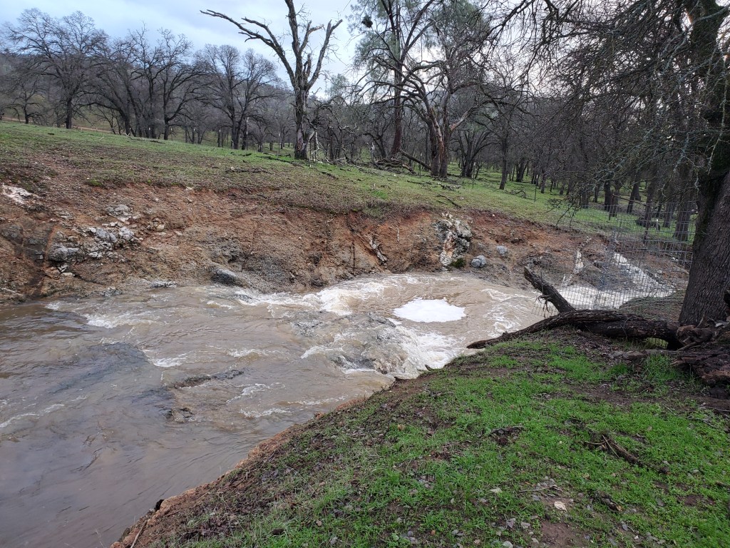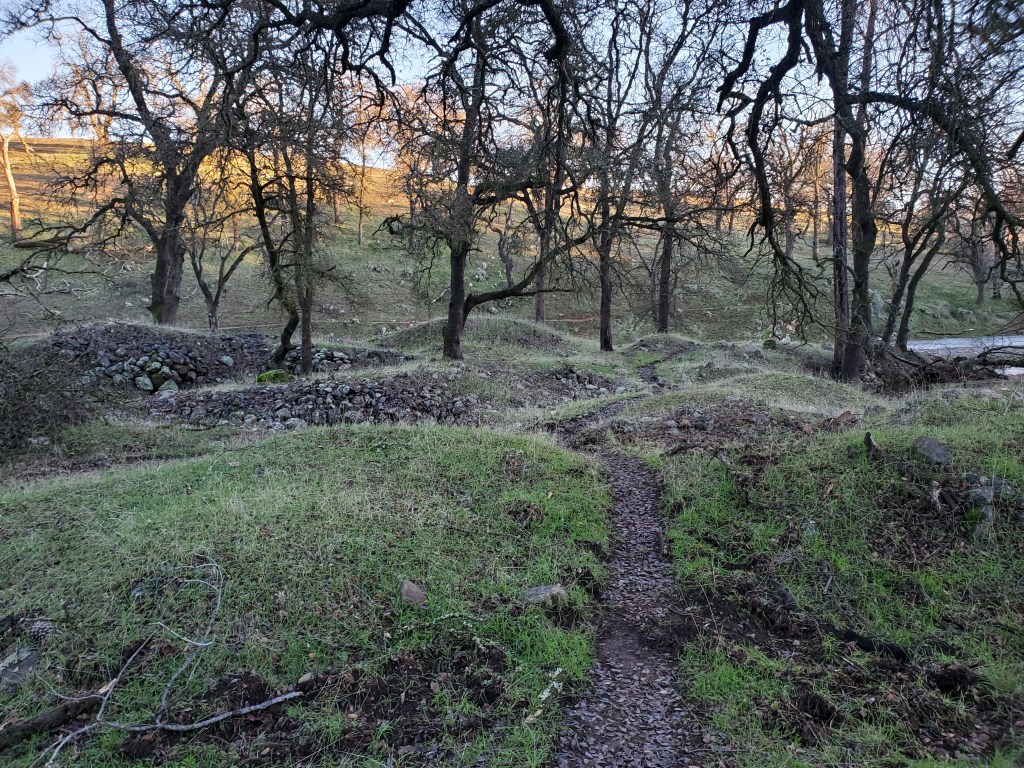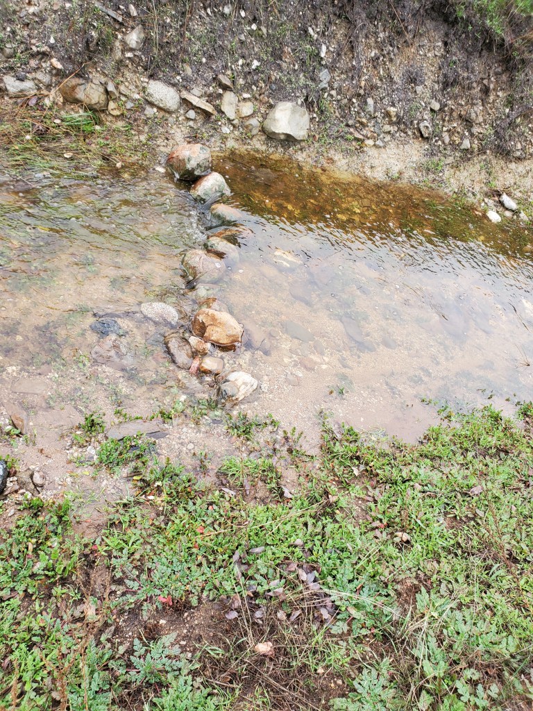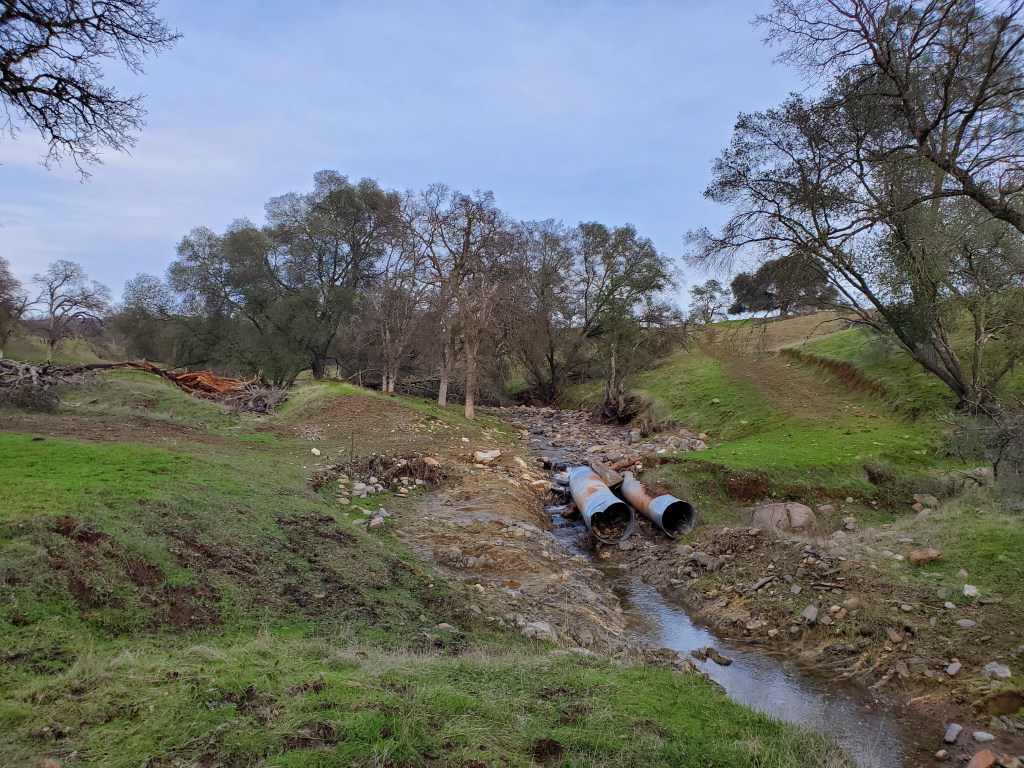 On my walk up stream, I found a few cowpies in the creek. This is not good. It adds significant organic matter/nutrients into the water, which promotes algae blooms when the temperatures warm, diminishing the water quality. I scraped some earth up the bank, put seed in, covered it lightly, then took the cow pie out of the water and placed it on top of the seeds. I got this idea from a California Association of Resource Conservation District conference session in December. It was a session on oak recruitment on rangeland with Kurt Vaughn and Alex Palmerlee. One of the tools they used in providing nutrients to acorn plantings was a slurry of cowpie and water. The audience could not stifle their amusement as the guys discussed the delight they had in mixing cow poo with water to make a mulch. Definitely gross to some. If it works better, what an abundant resource on ranches.