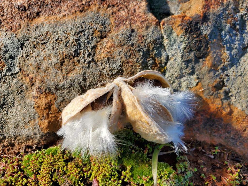 I started out raking the ground open, but quickly decided I needed to get more personal with my work. The gloves came off and the rake set down. It was me and about 300 seeds, many still connected to the fluff they are born with, meant to sail on the wind to spots further from their home. And, further from home they were — about 100 feet. I took off the fluff, made a hole with my finger and planted three to ten seeds per hole – depending on size.